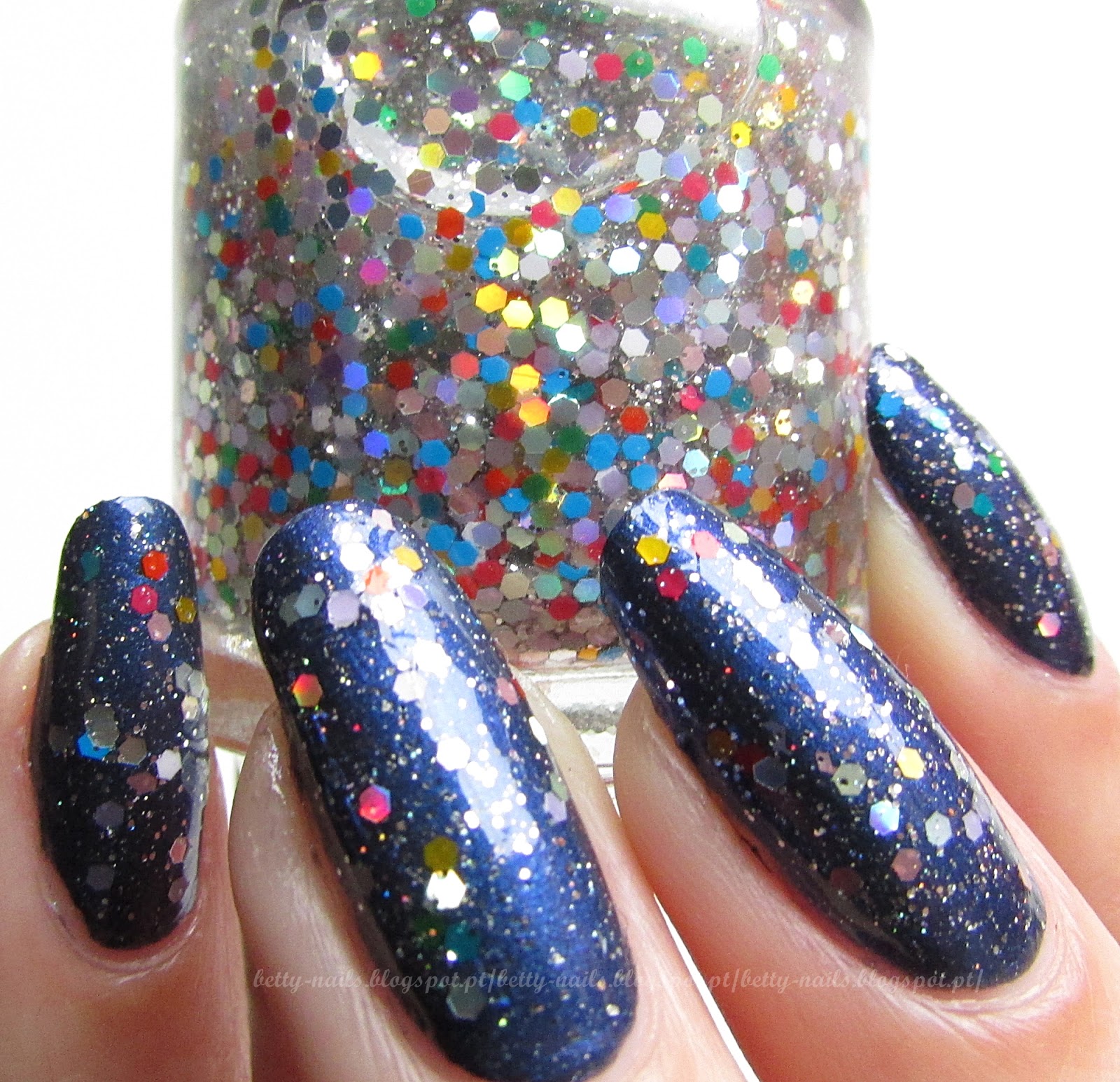 Mais um lindo glitter to coat, repleto de glitters hexagonais pequenos de várias cores e complementado por um fino glitter holográfico e prateado. Como os outros dois que já revi, a aplicação é simples, os glitteres espalham-se bem e secam bastante rápido, cerca de 3mins.
